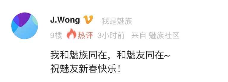 中,黄章回复称:“我和魅族同在,和魅友同在。”